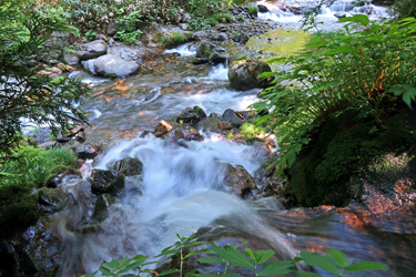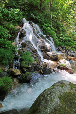 照葉峡は県道63号沿いにあり、県道から11の滝や渓流を見る事が出来る渓谷です。国道291号から県道63号に入り道なりに23km位進むと、県道沿いに最初の潜龍の滝があります。途中にある藤原ダムに寄らないのであれば、ダムの3km位手前の「栗沢」交差点を左折して一旦県道63号を離れて進んだ方が3km位照葉峡までの距離が短くなります。左折して6km位進むと県道63号に戻ります。